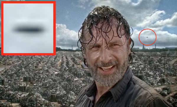 Aquí está el último lugar en el que esperarías encontrar un OVNI ... en The Walking Dead, la serie televisiva de éxito. El OVNI está a las 28:27 minutos del show. Fue encontrado por Lampicka PSN de Youtube y muestra un objeto oscuro que se mueve de la derecha a la izquierda de la pantalla.